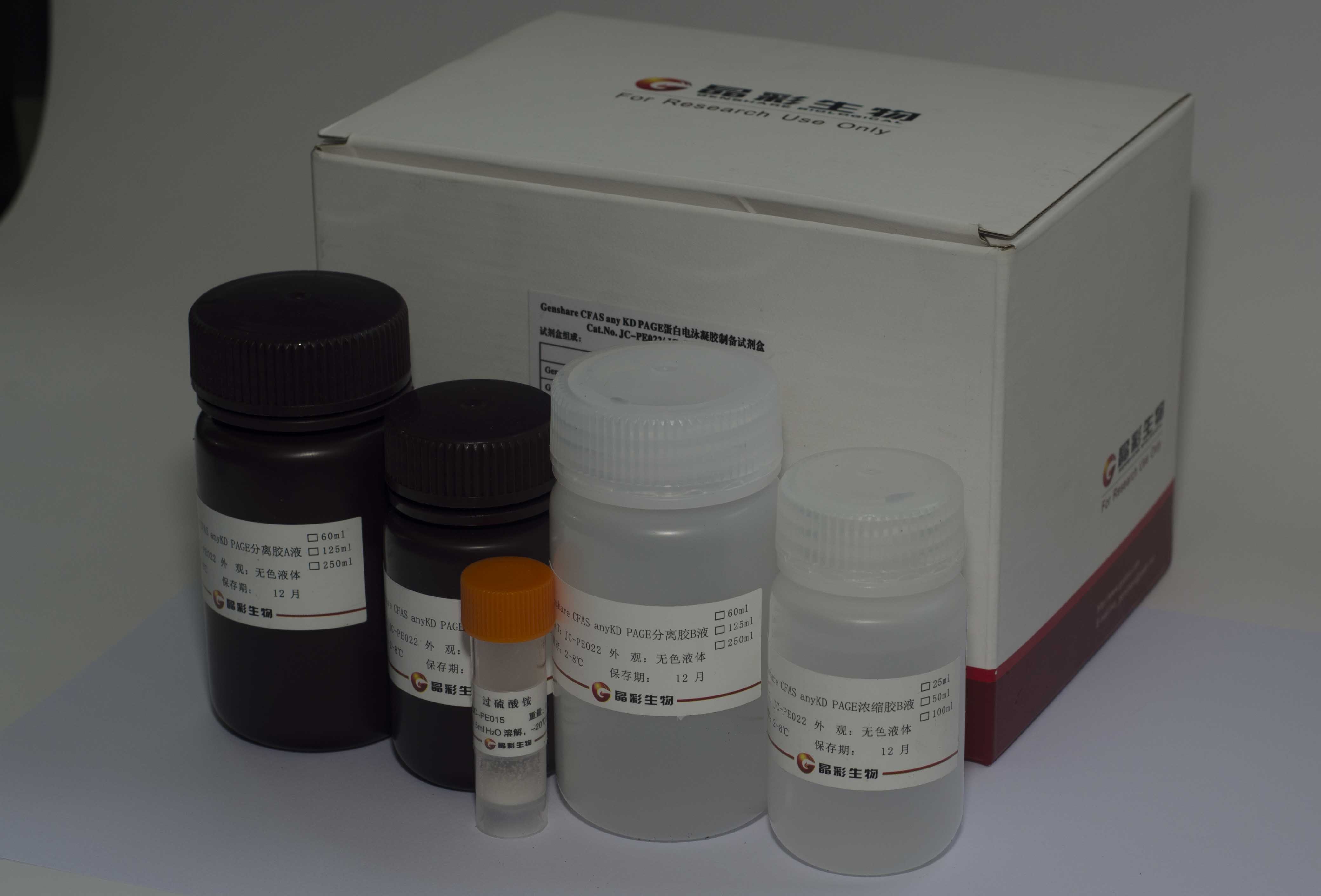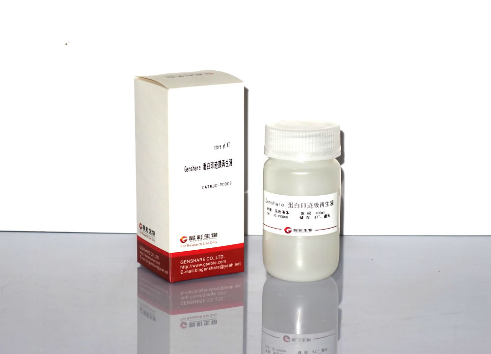 獨有的發(fā)光緩沖系統(tǒng)使熒光激發(fā)更加穩(wěn)定,從而保證了發(fā)光平臺期的有... 膜再生液本產(chǎn)品采用溫和洗滌配方,可在不影響目的蛋白的情況下,去除結(jié)合在印跡膜上的一抗和二抗,使同一張膜可進(jìn)行多次抗體檢測,無需反復(fù)電泳和轉(zhuǎn)膜,節(jié)省樣品和時間,適用于使用NC或PVDF膜進(jìn)行Western Blot檢測時條件的優(yōu)化或同一樣品不同蛋白的檢測。 快速蛋白電泳試劑盒I型1、最快速的電泳操作: